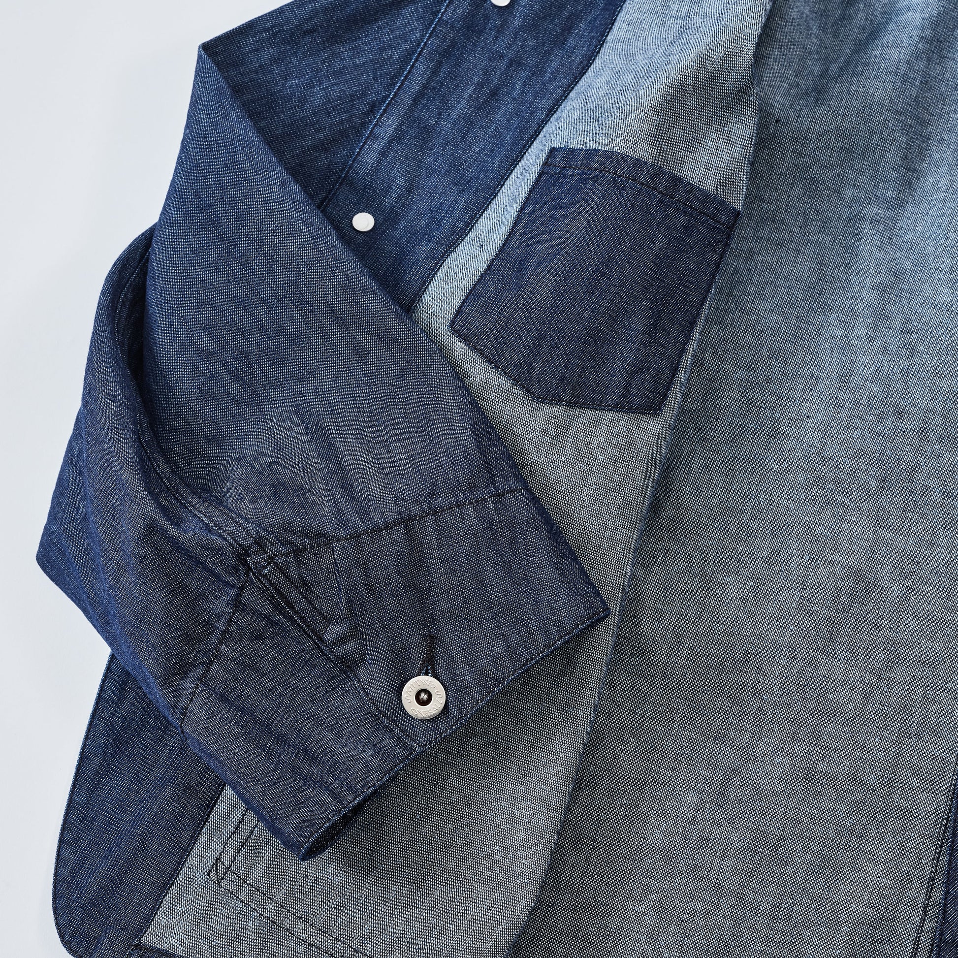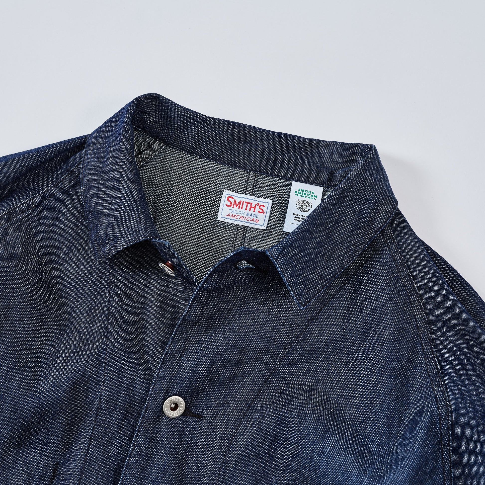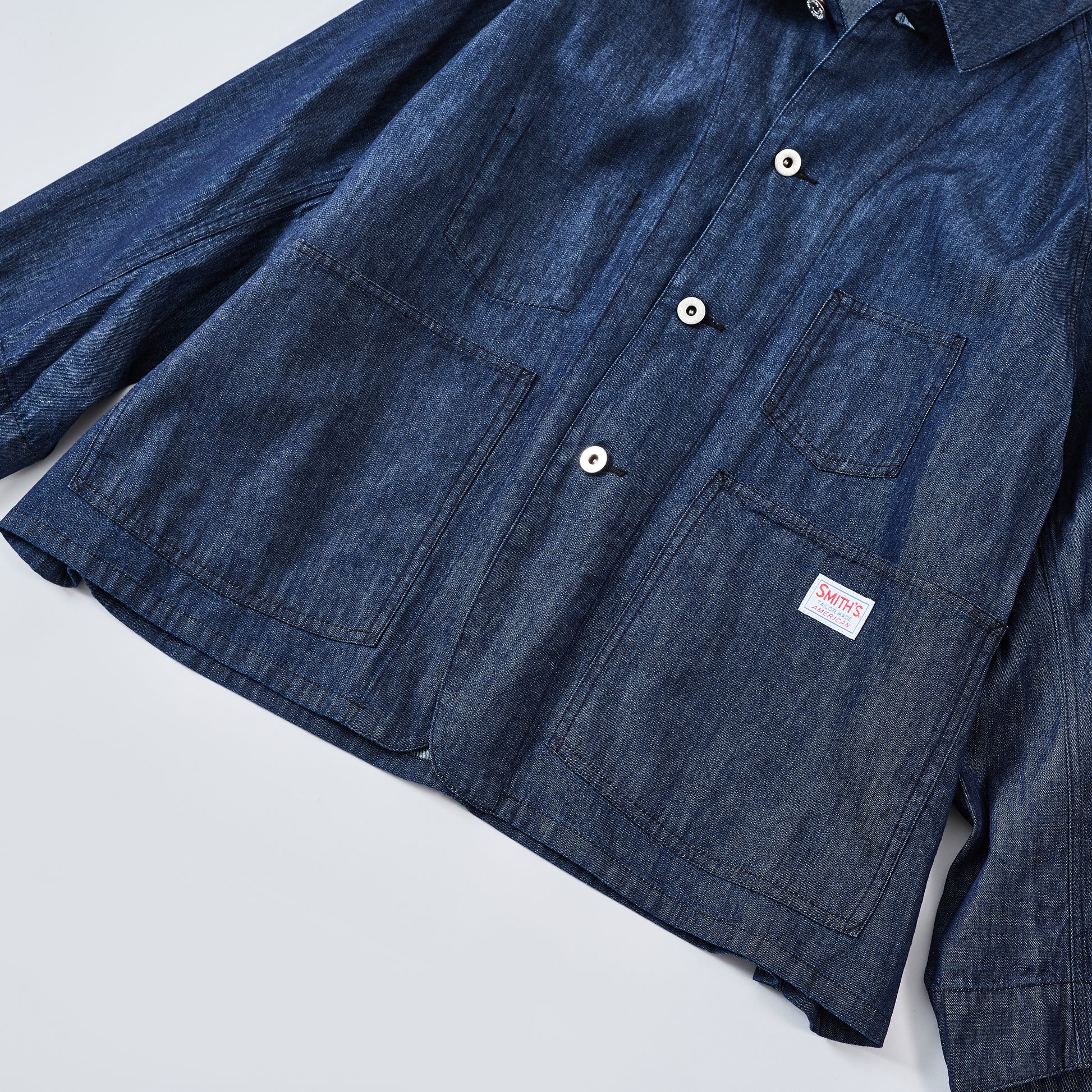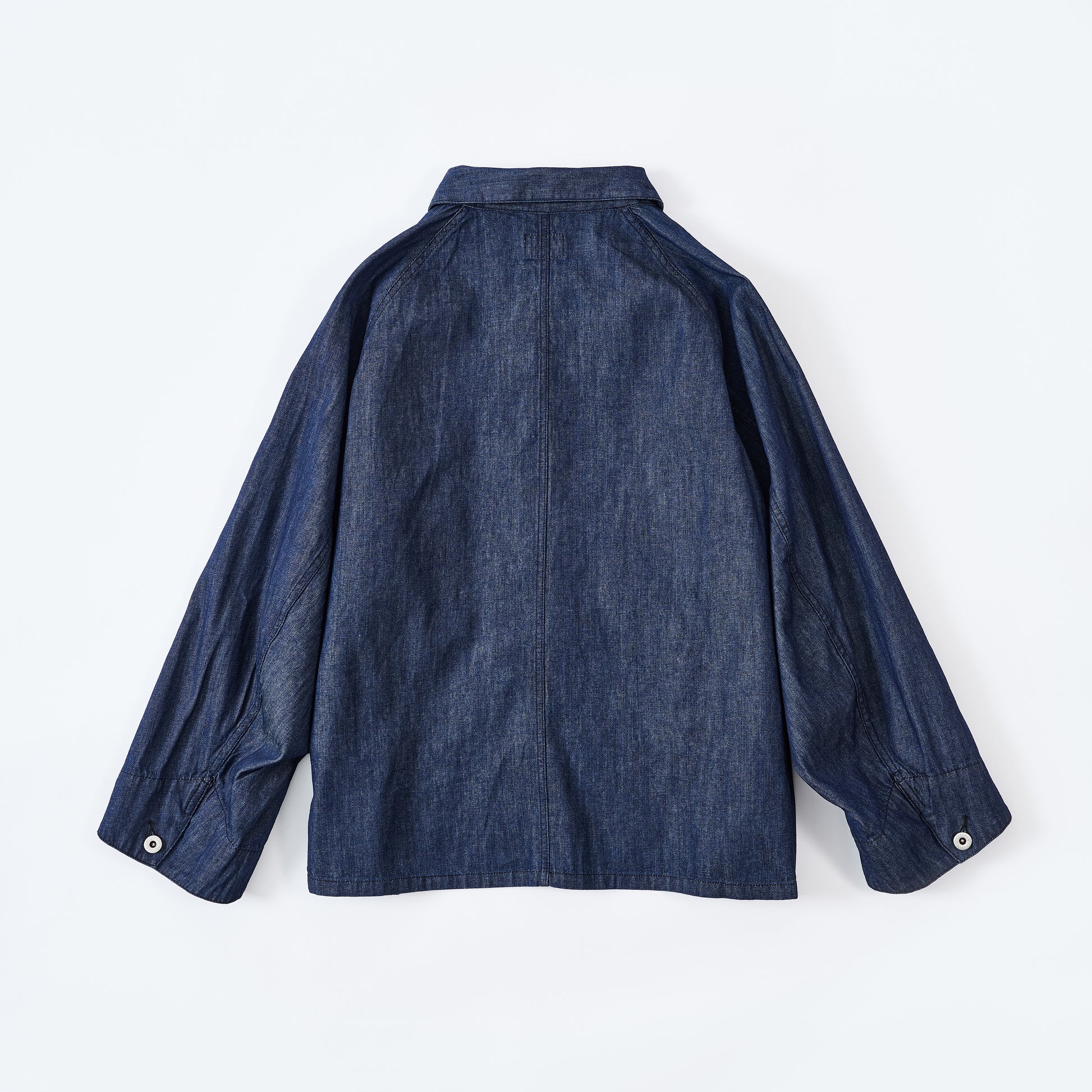 春夏シーズンにも過ごしやすい薄手の7ozデニムを使用したレディースサイズのカバーオールジャケットは着用による経年変化も魅力。オーセンティックなワークウェアのデザインとゆったりとした女性らしい袖周りのシルエットが魅力で、クリーンな印象の女性らしいジャケットです。