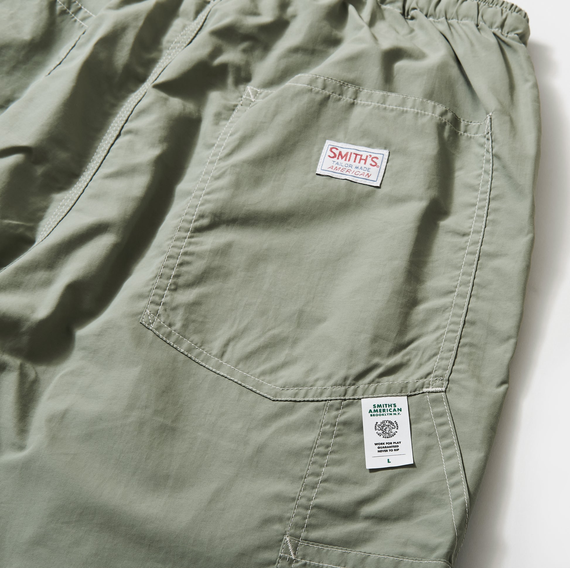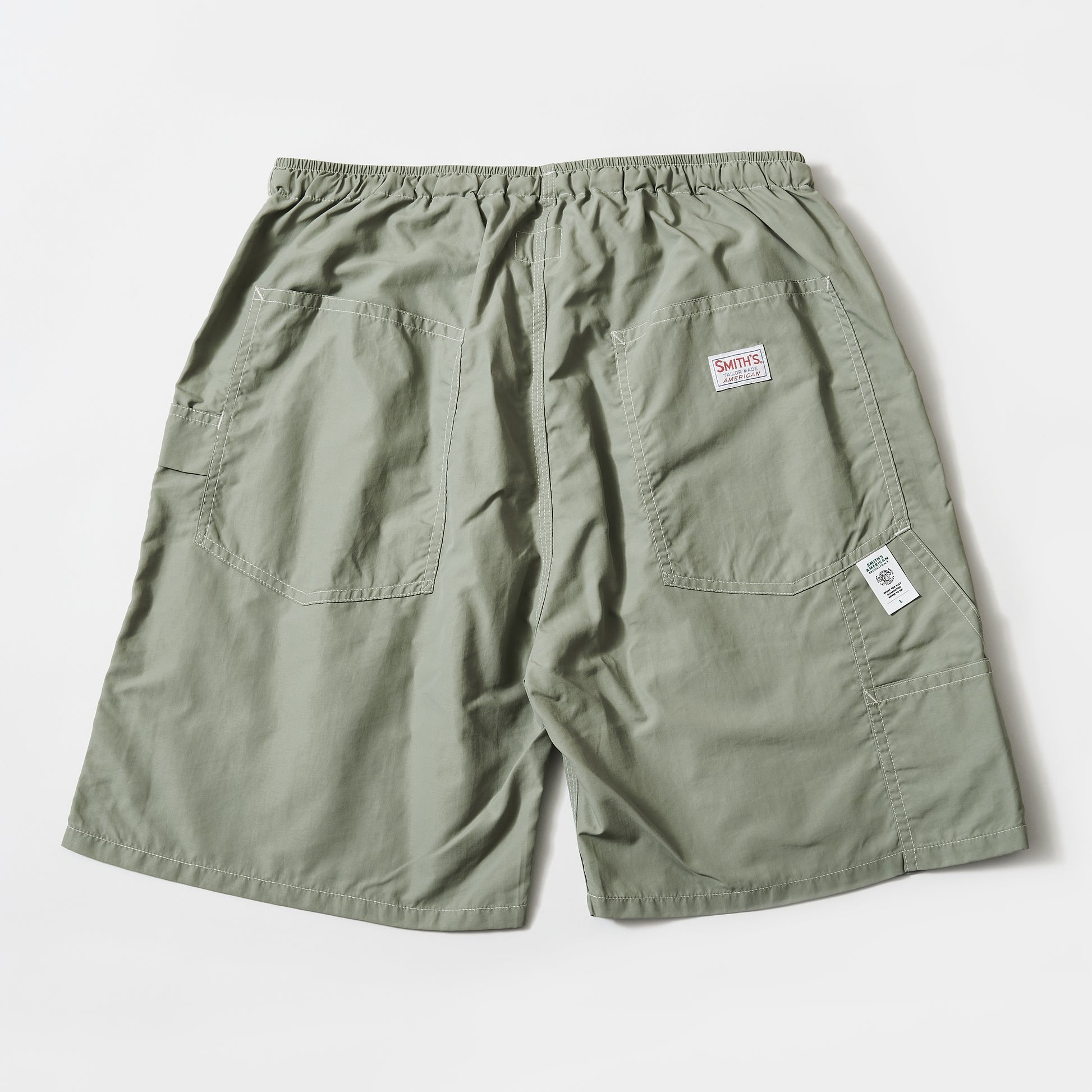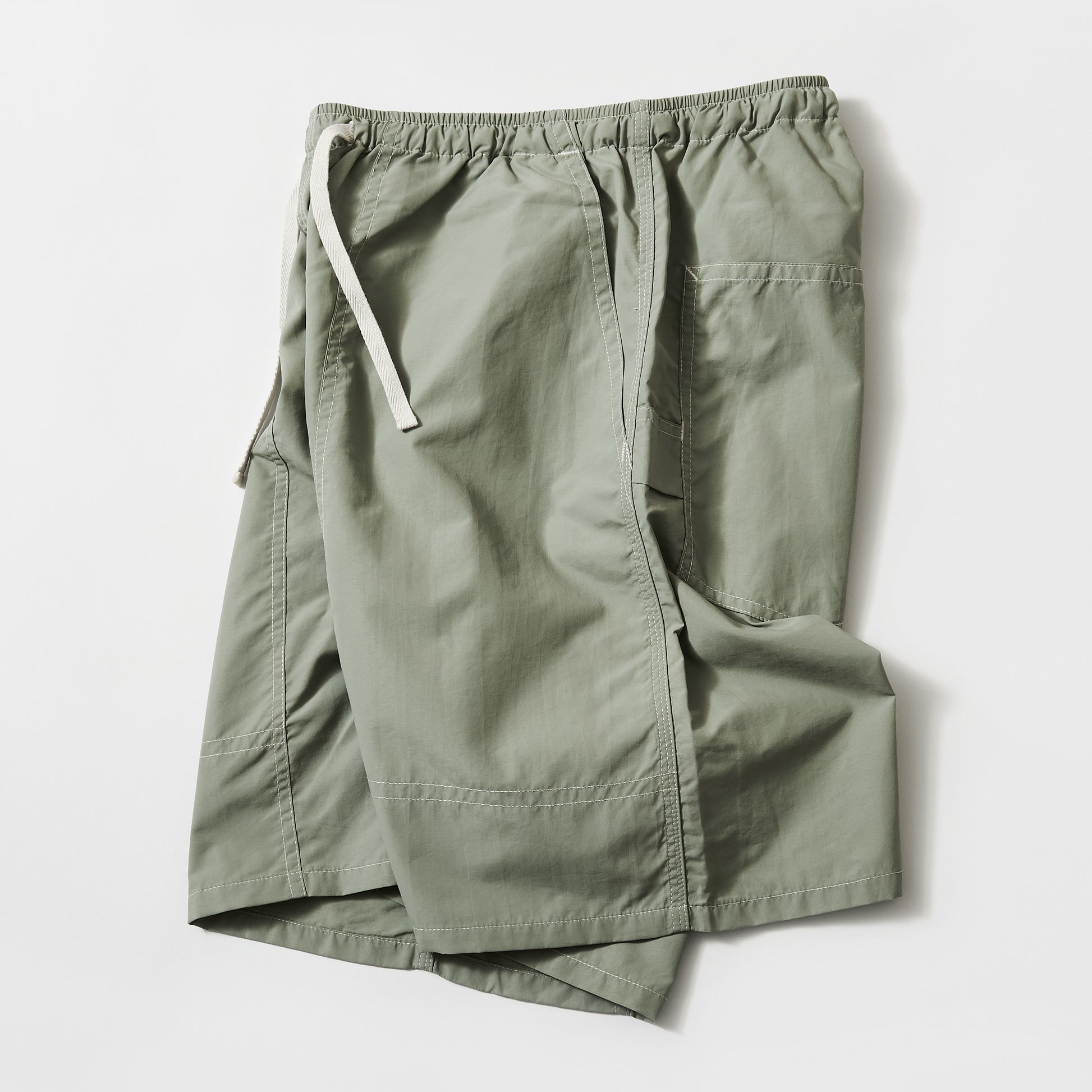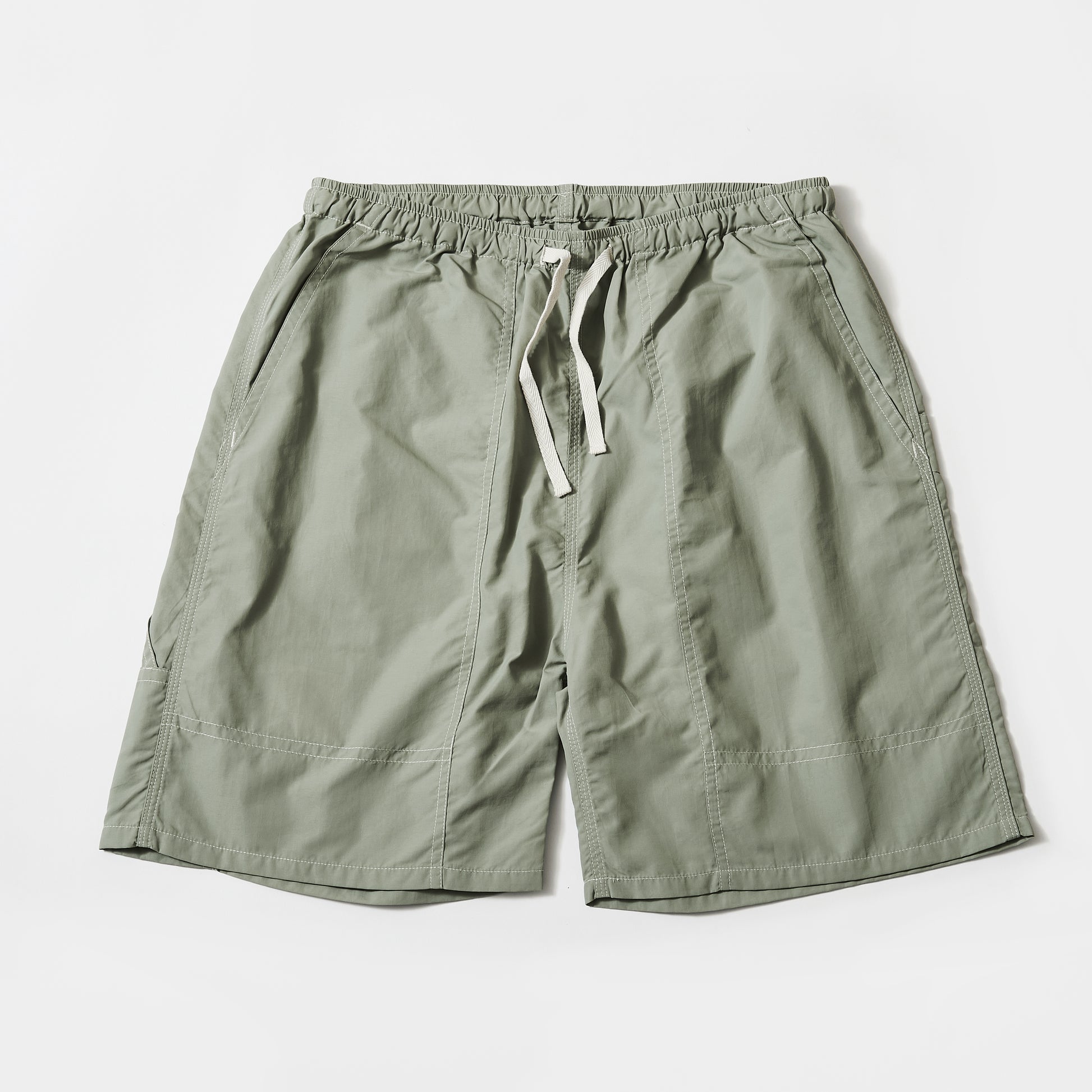 シワ感が魅力的なライトウェイトのナイロン素材のペインターショーツです。ポケットなどのオーセンティックなワークウェアのデザインと風合いあるナイロン素材の組み合わせが新鮮な印象で、縫製箇所のパッカリング(しわ感)感溢れる立体感のある雰囲気も魅力です。