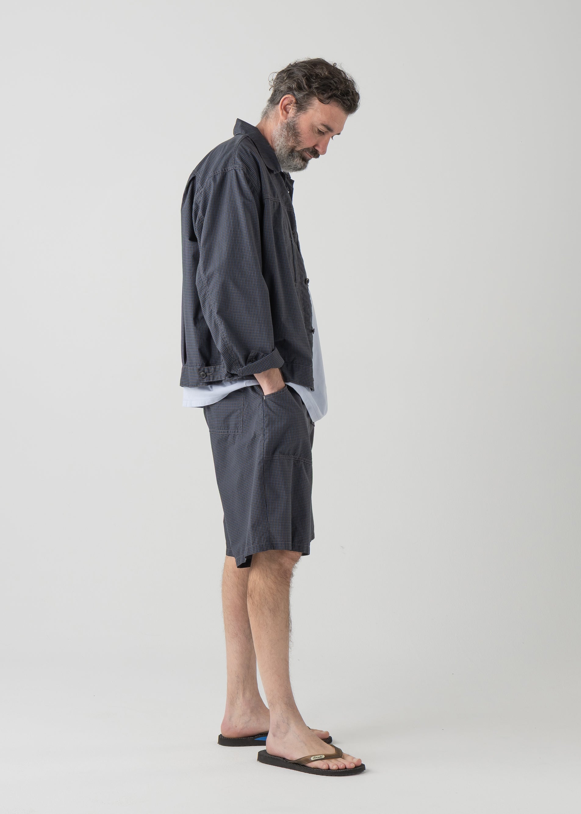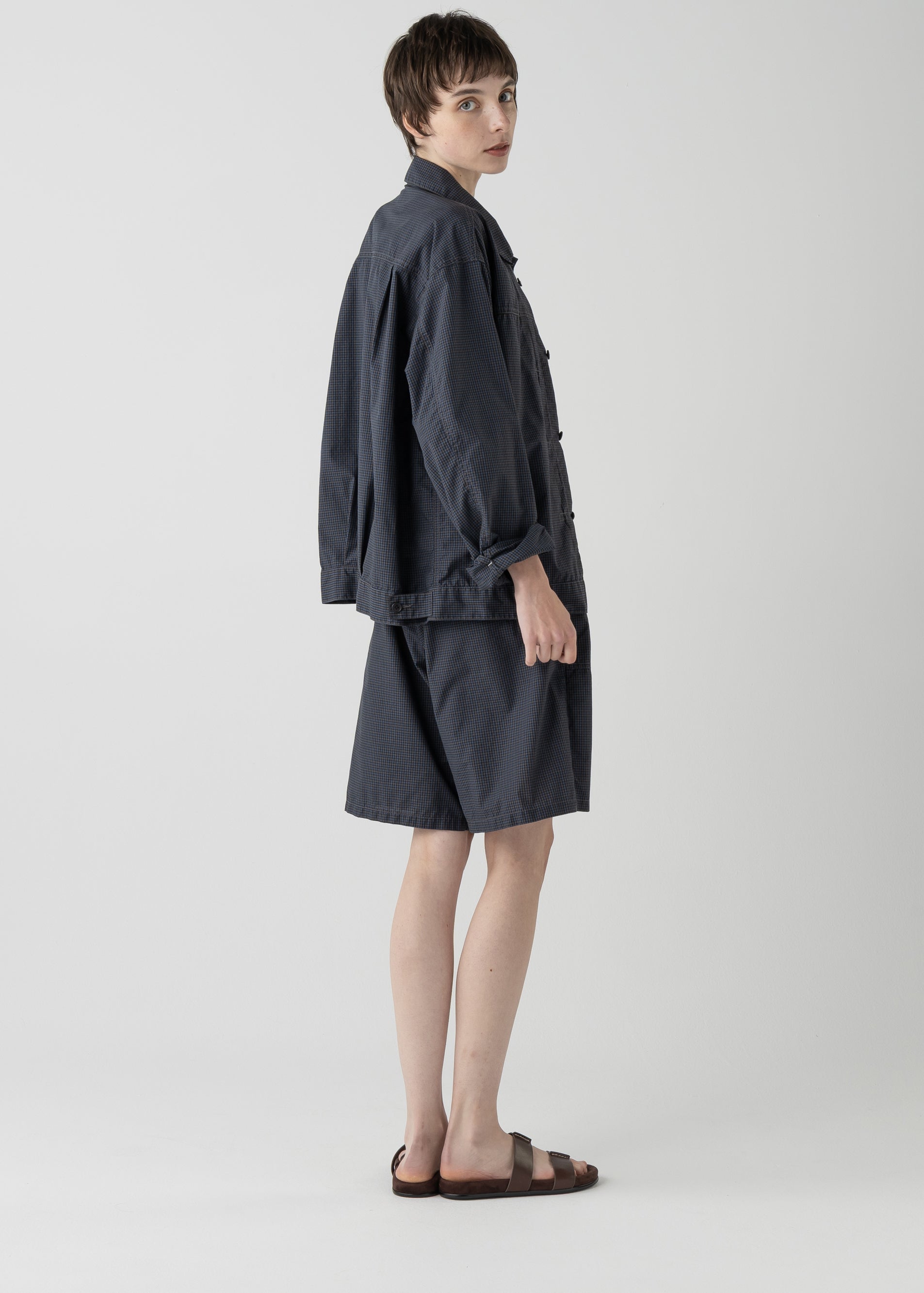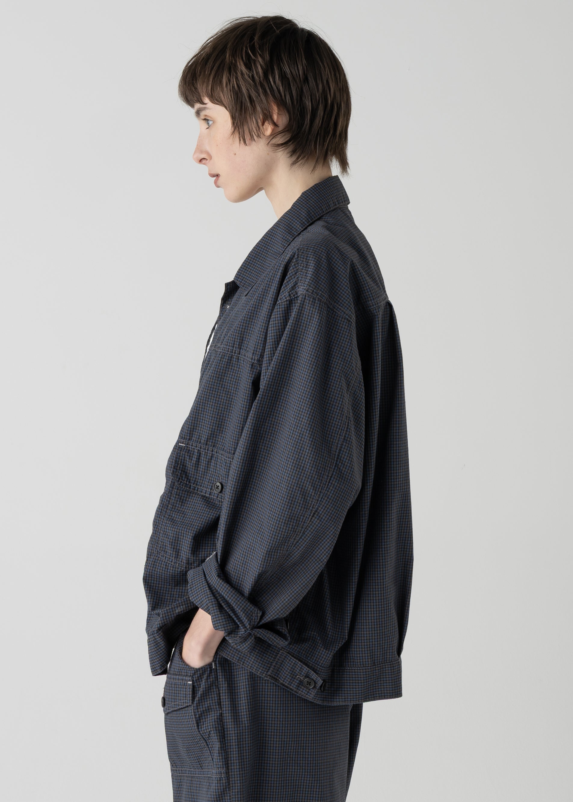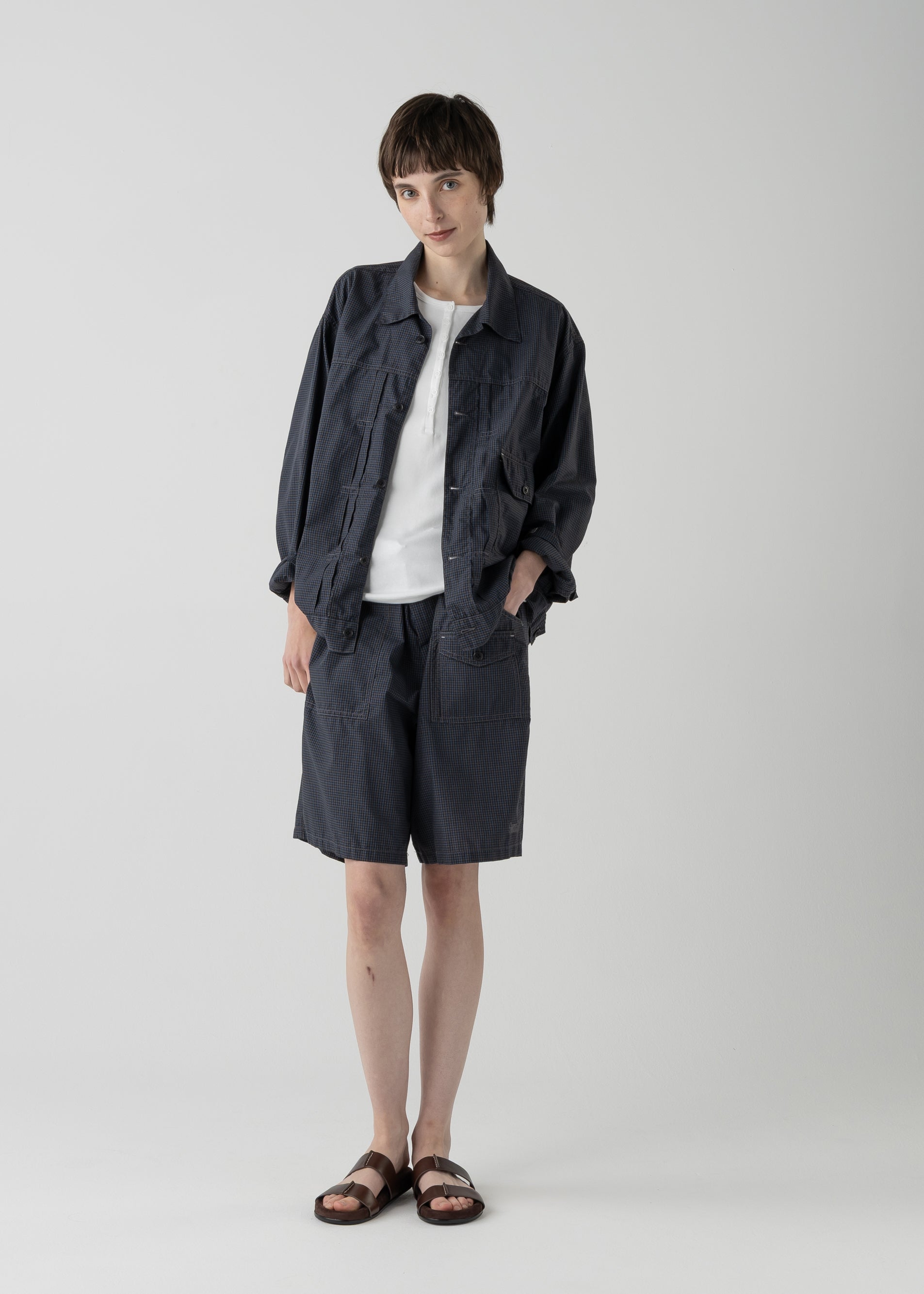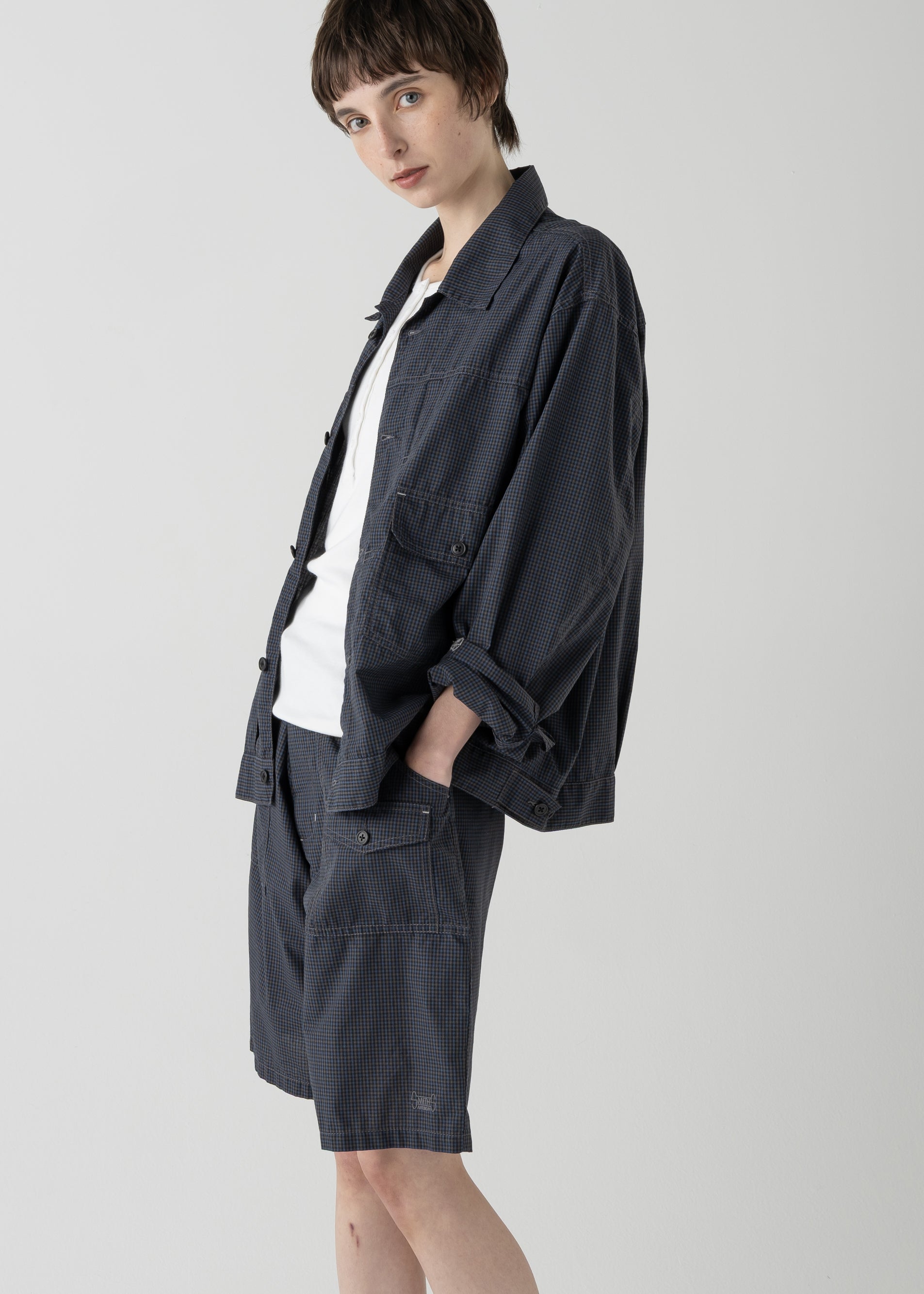 26SSシーズンでは、軽さと速乾性を兼ね揃えたポリエステル混のミニチェックを採用。