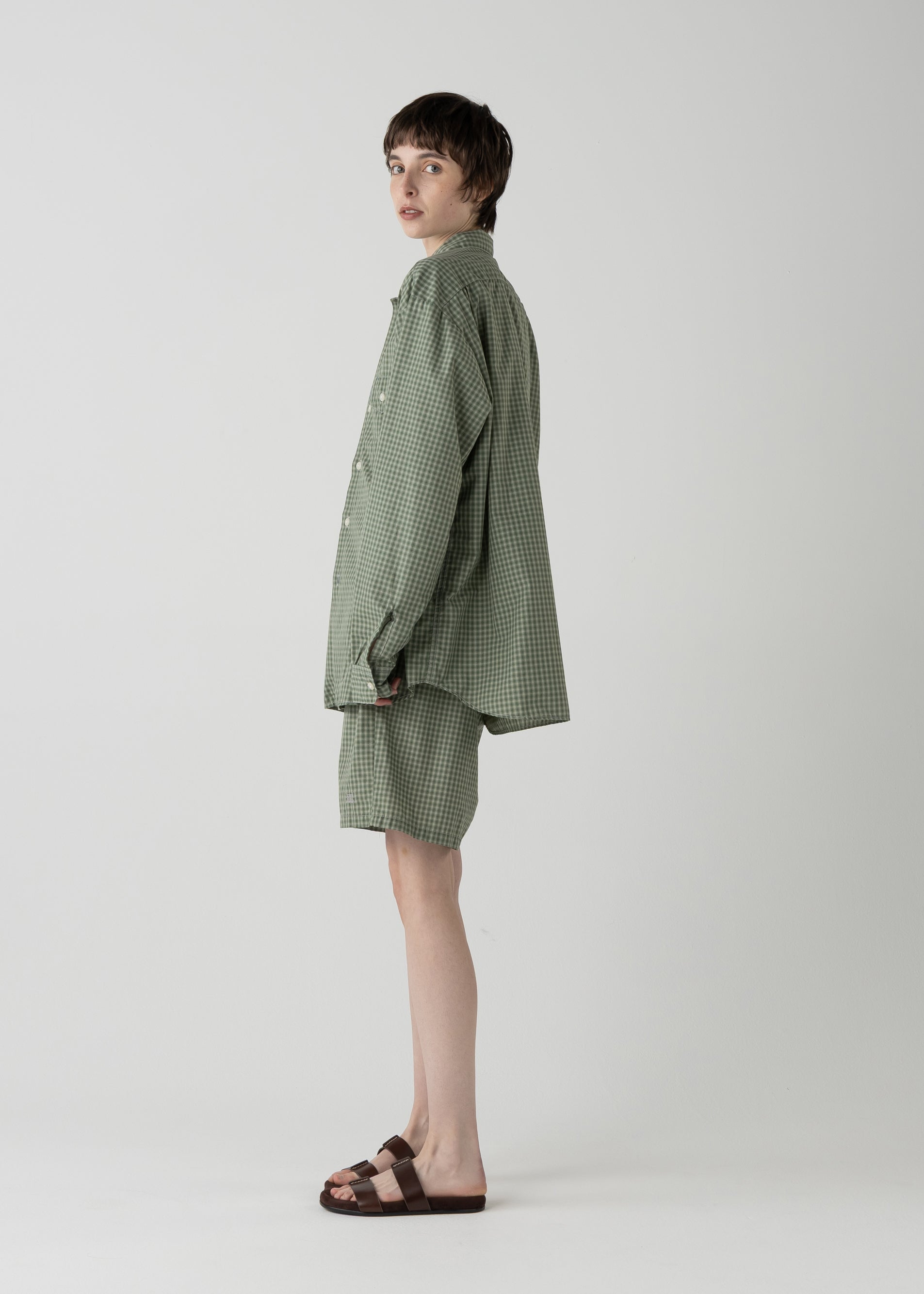 26SSシーズンでは、軽さと速乾性を兼ね揃えたポリエステル混のミニチェックを採用。