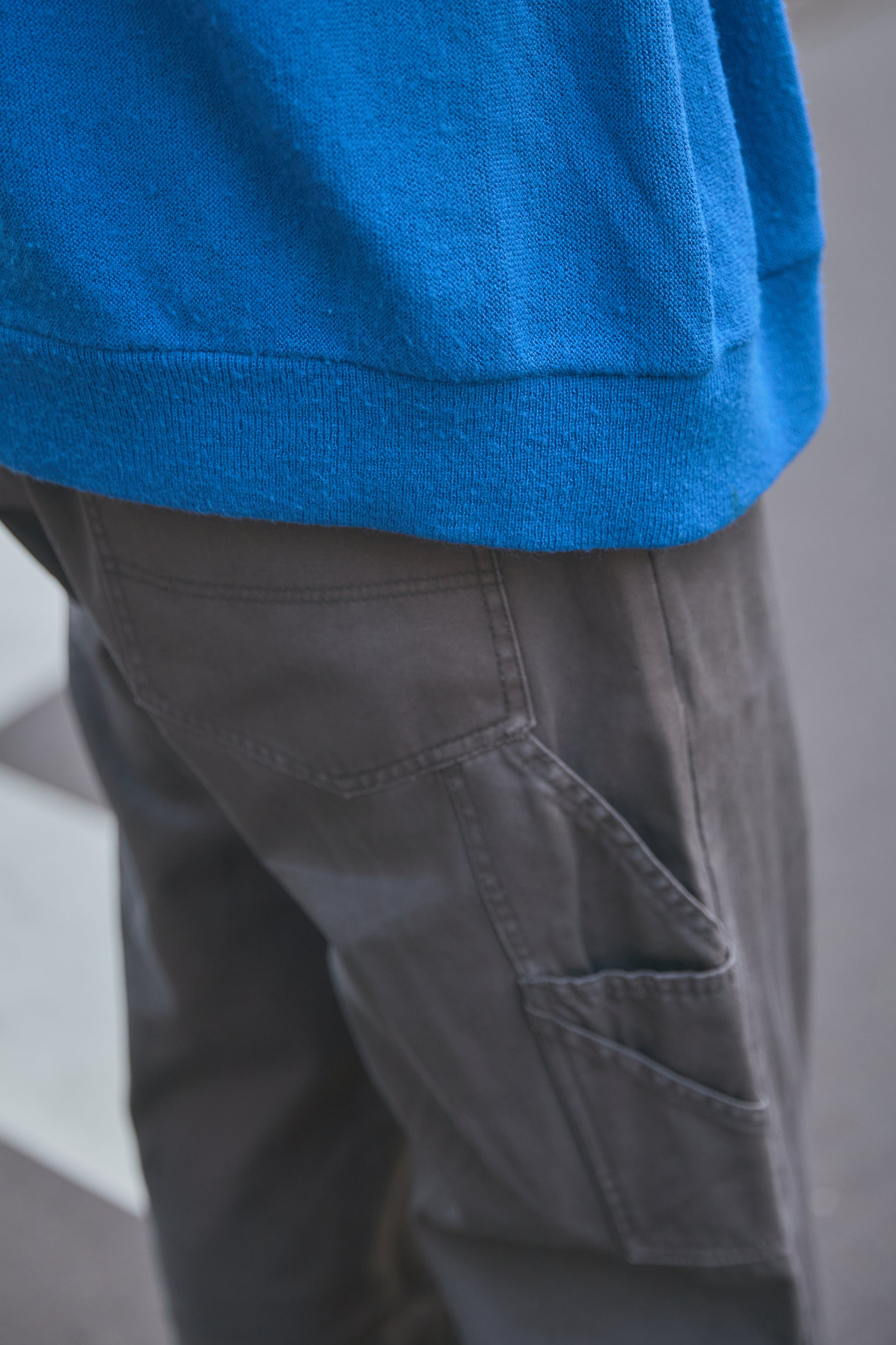 そんな空気をまとったレアールペインターは、上品なテーパードシルエットとオーバーダイ(製品染め)による彩り豊かなカラーウェイが魅力の、シックな面持ちのペインターパンツです。 通年着用しやすいミドルウェイトのコットンツイルを使用し、着用による経年変化も楽しめる一枚です。 ウエスト内側にはドローコードが入りベルトレスで着用できるイージーパンツ仕様。