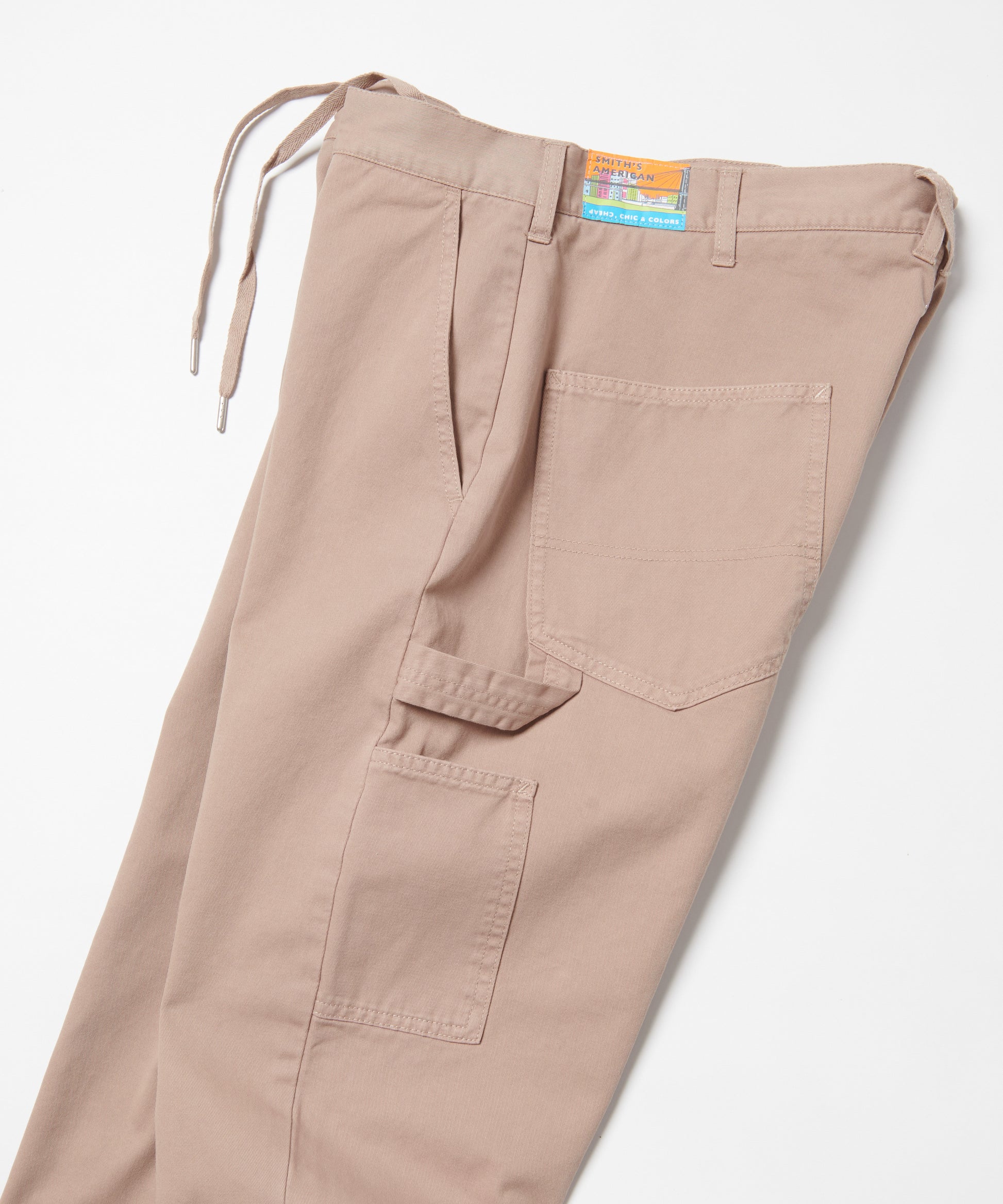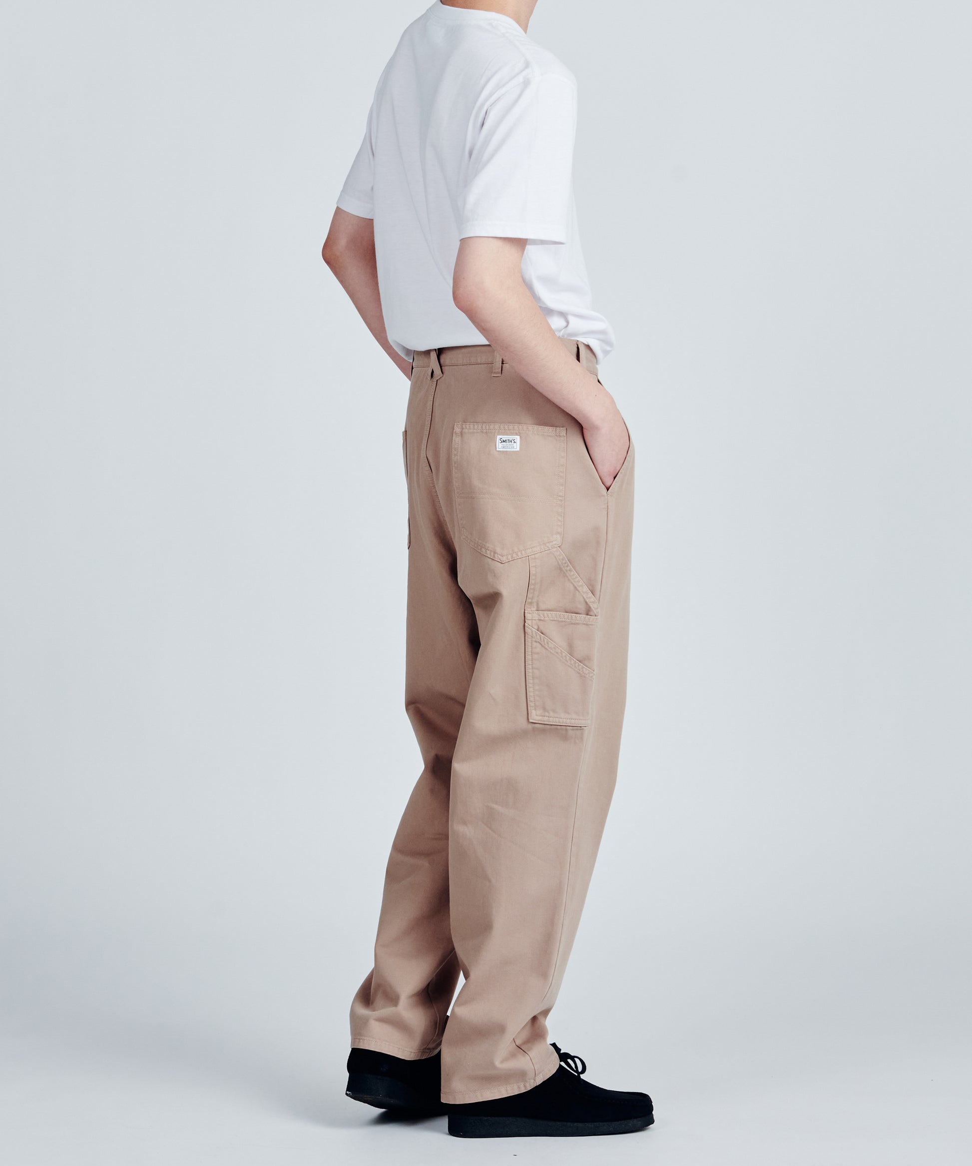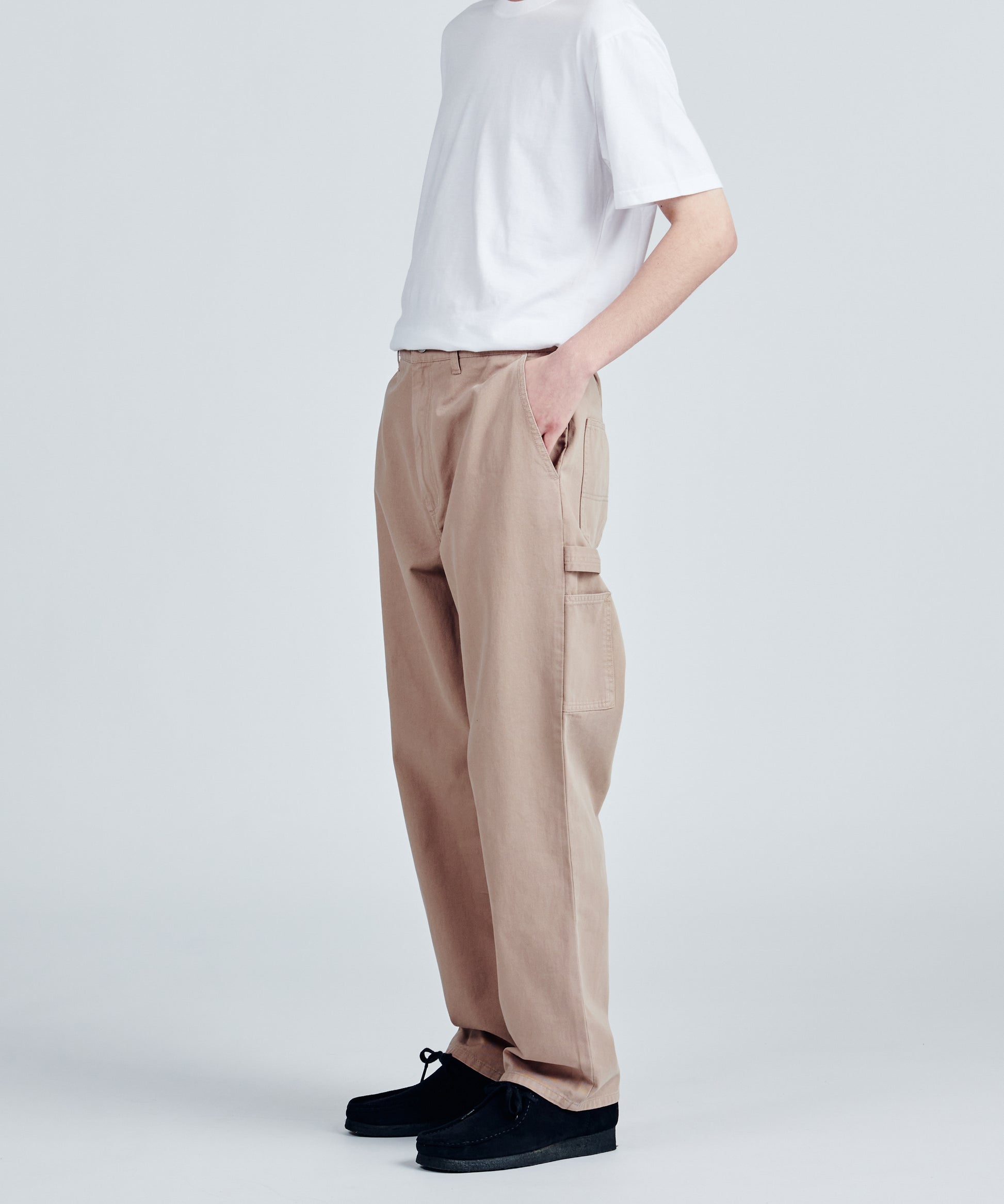 そんな空気をまとったレアールペインターは、上品なテーパードシルエットとオーバーダイ(製品染め)による彩り豊かなカラーウェイが魅力の、シックな面持ちのペインターパンツです。 通年着用しやすいミドルウェイトのコットンツイルを使用し、着用による経年変化も楽しめる一枚です。 ウエスト内側にはドローコードが入りベルトレスで着用できるイージーパンツ仕様。