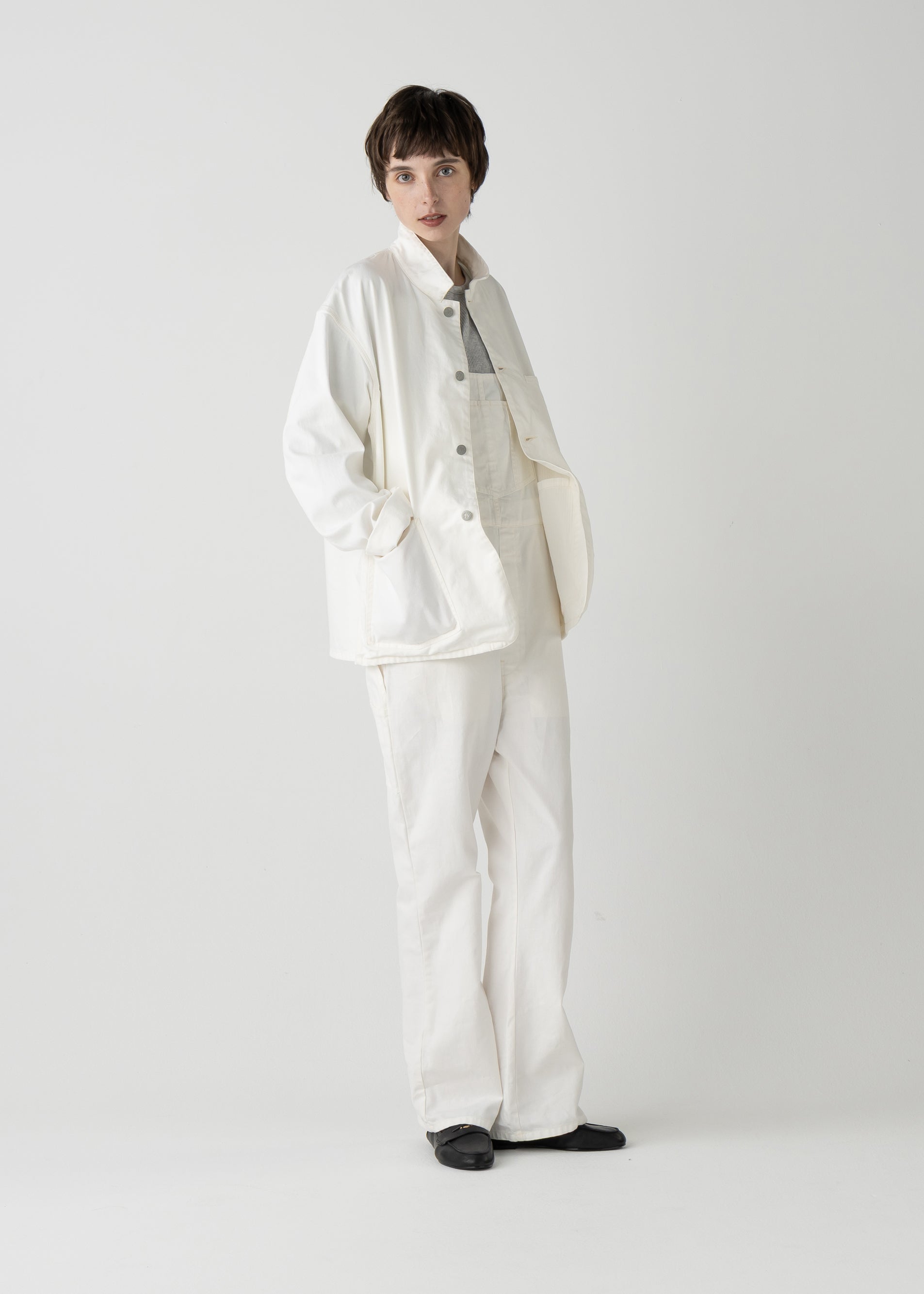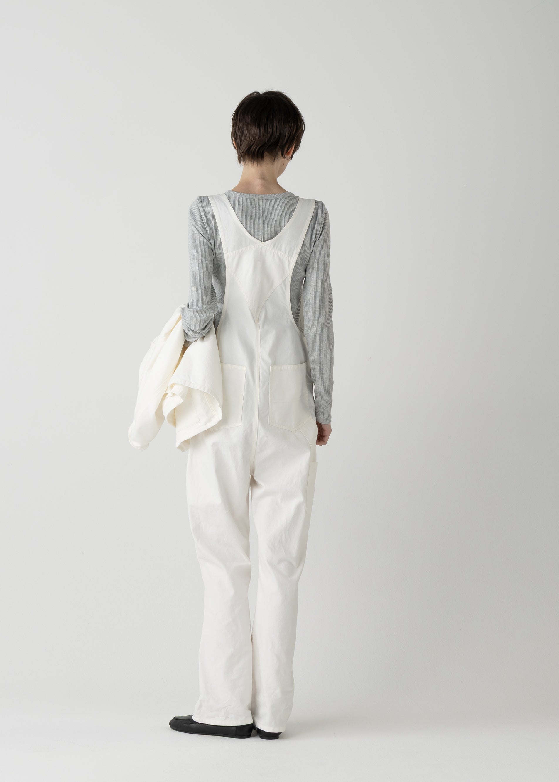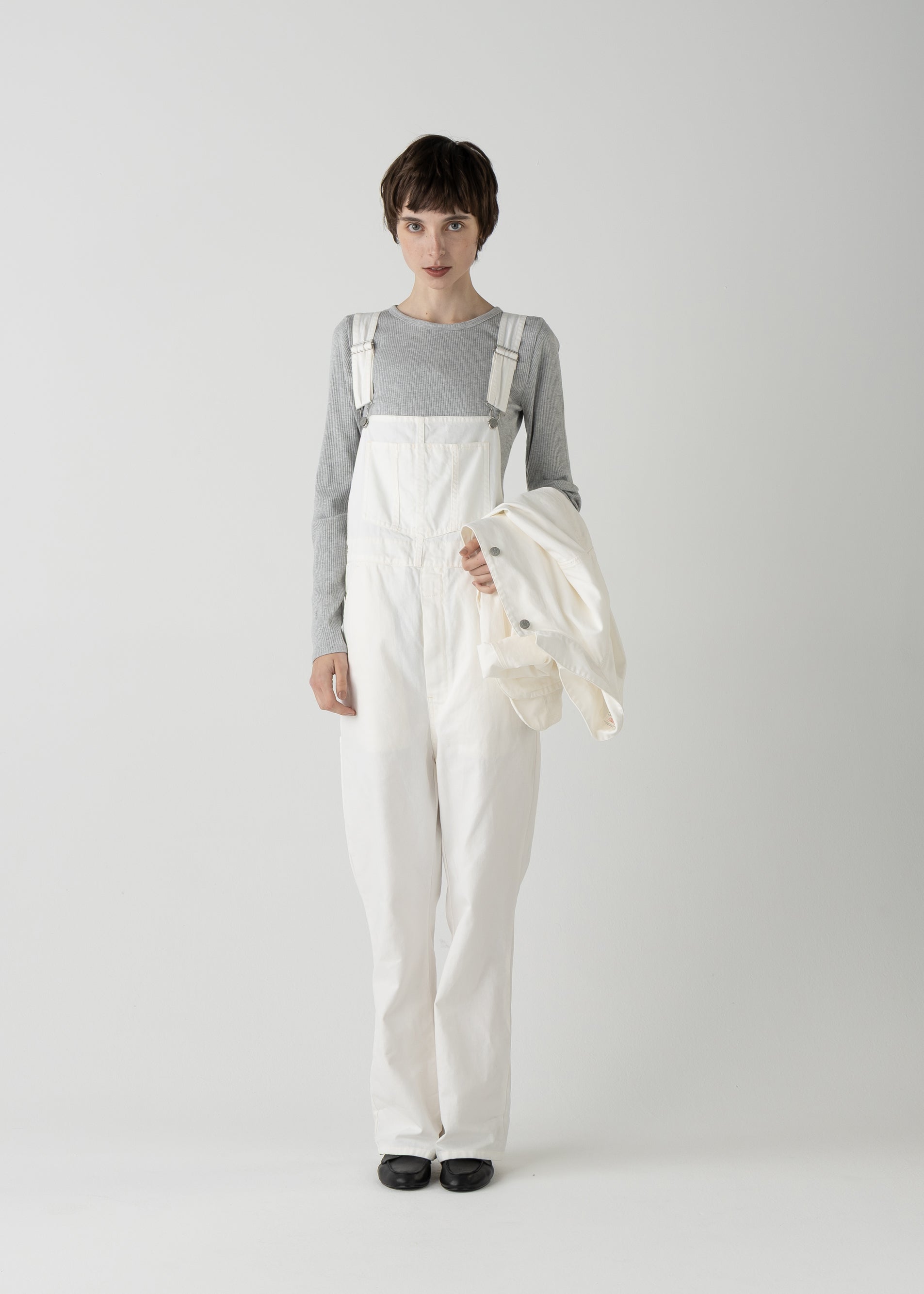 "LES HALLES" flare overall / 10 oz color denim [WHITE DENIM]