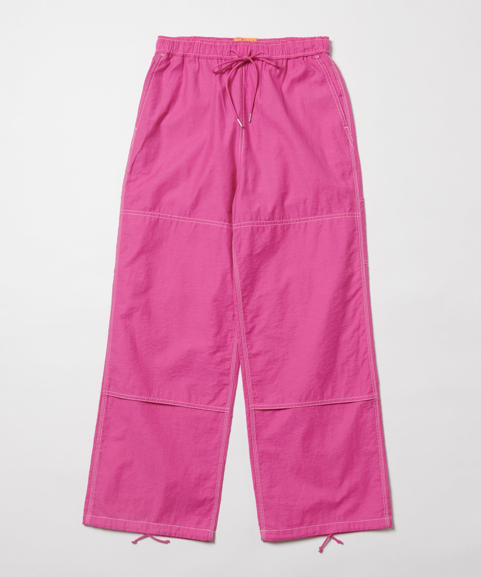 力強いイメージのW/Knee のワークパンツを、鮮やかなカラーウェイや涼しげな素材感のウィメンズのリラックスパンツにアレンジ。特徴的なリラックスフィットと配色のステッチワークが光る一枚です。西海岸のビーチサイド特有のリラックスムードやカラフルな情景を表現したVENICEラインのイージーペインターパンツです。裾には調整出来るドローコードが入りシルエットを自由に調整出来ます。