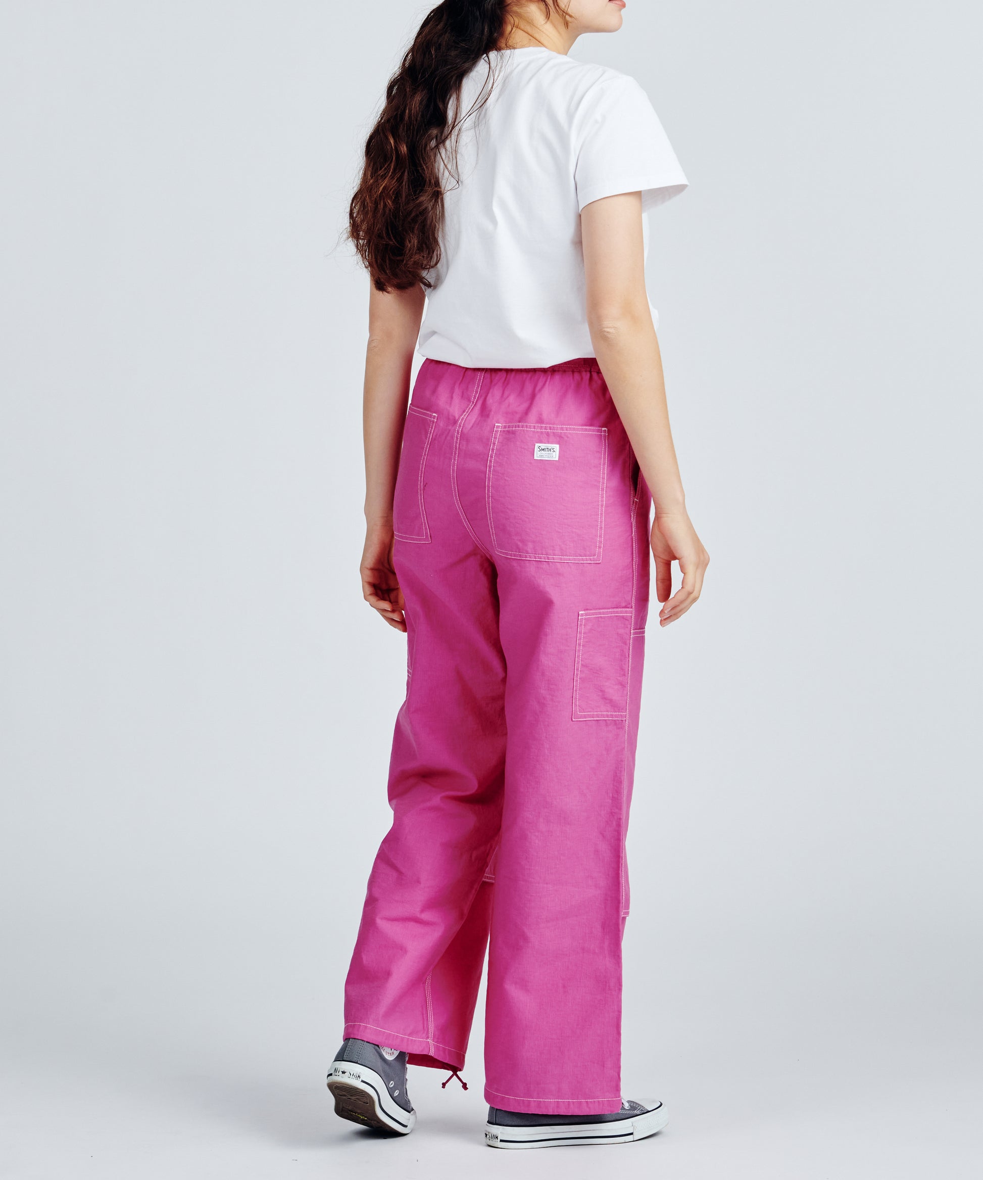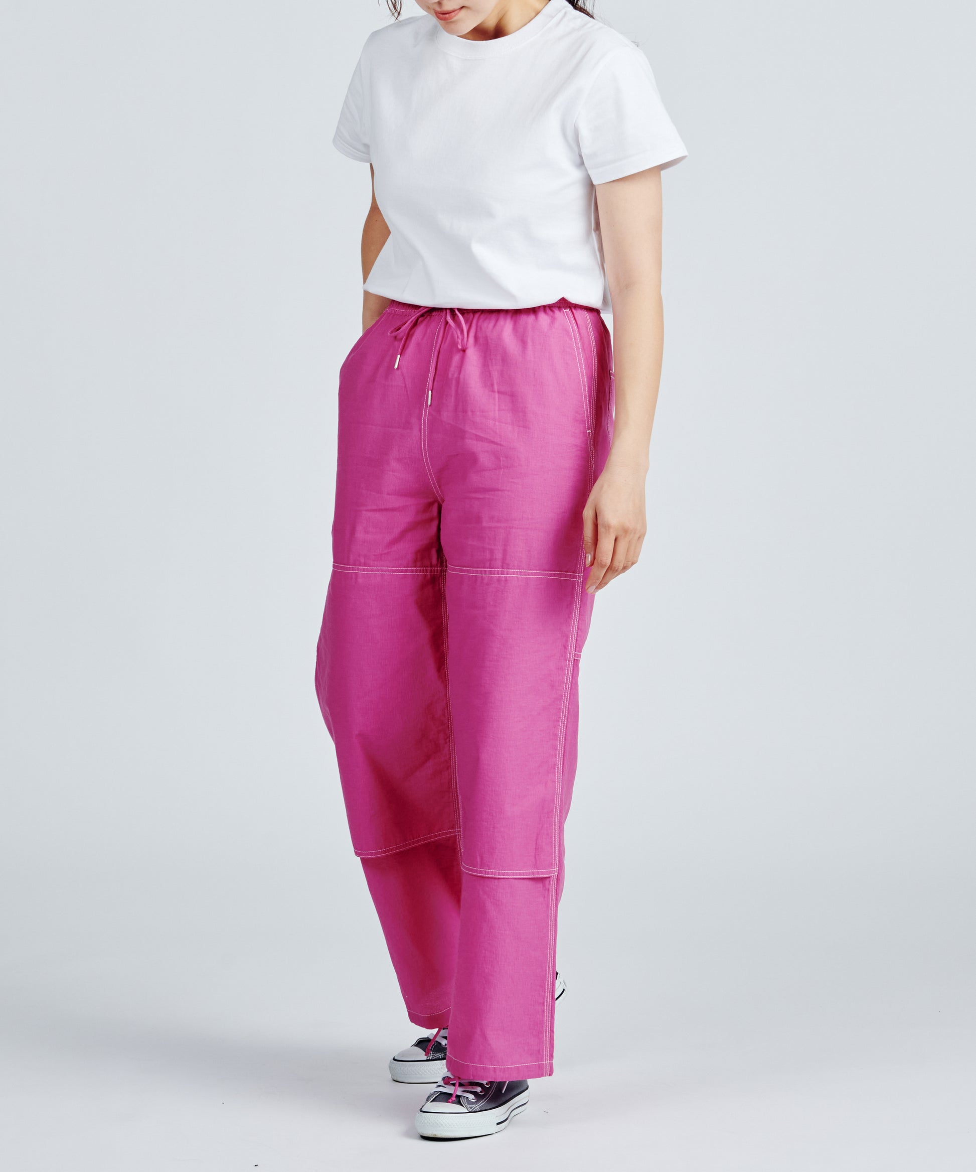 W/Knee work pants with a strong image are rearranged into women's relaxed pants with vivid colorways, cool fabrics and silhouettes, and colorful stitchwork, expressing the relaxed mood and colorful scenes unique to the West Coast beachside.