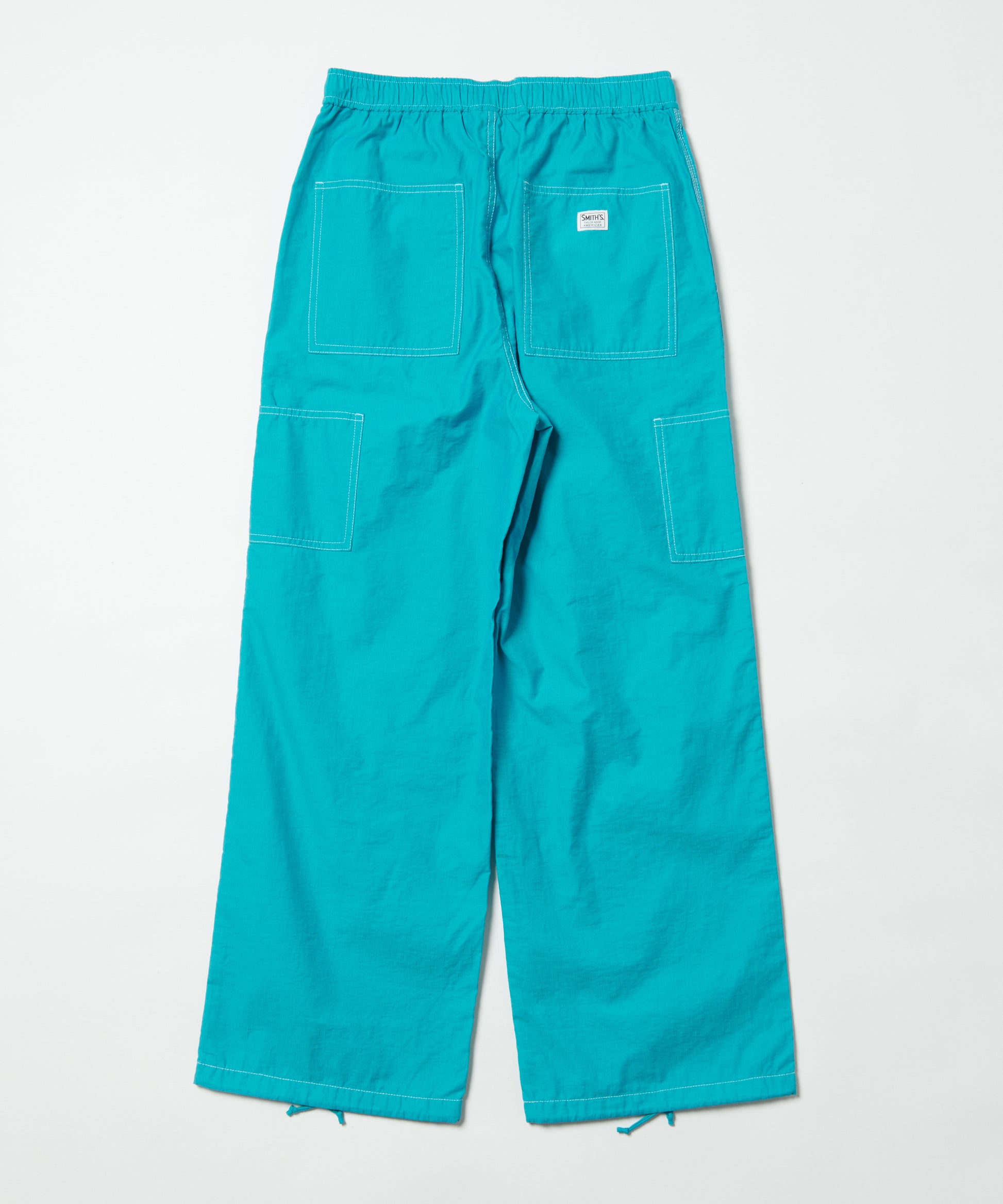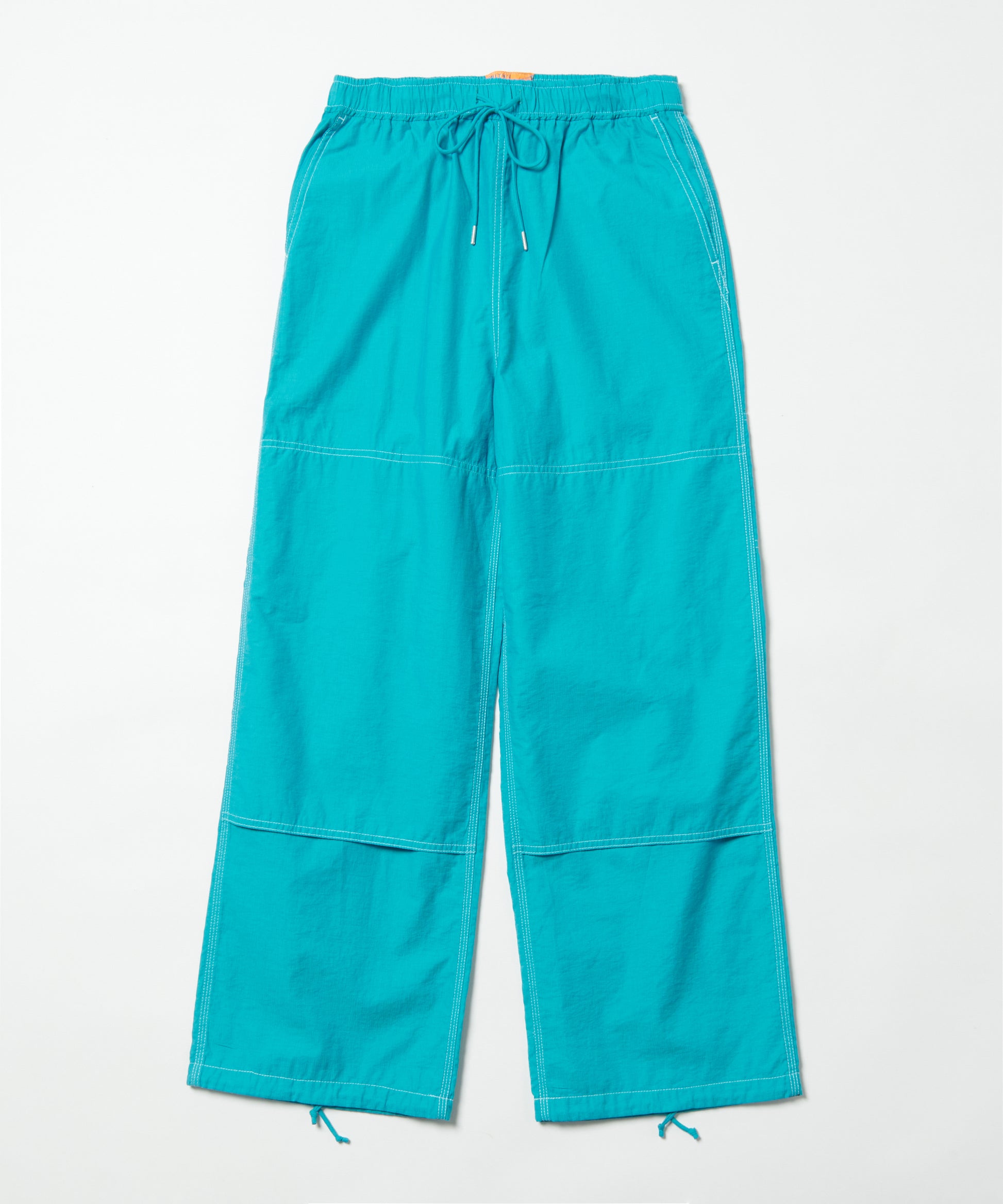 力強いイメージのW/Knee のワークパンツを、鮮やかなカラーウェイや涼しげな素材感のウィメンズのリラックスパンツにアレンジ。特徴的なリラックスフィットと配色のステッチワークが光る一枚です。西海岸のビーチサイド特有のリラックスムードやカラフルな情景を表現したVENICEラインのイージーペインターパンツです。裾には調整出来るドローコードが入りシルエットを自由に調整出来ます。